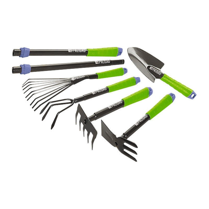 Комплектът PALISAD е истинско съкровище за всеки градинар. Сетът включва общо седем части – пет основни инструмента и две удължаващи дръжки, които ви позволяват да достигнете по-труднодостъпни места, без да се навеждате и да напрягате гърба си. Всеки от инструментите е проектиран със специфична цел: