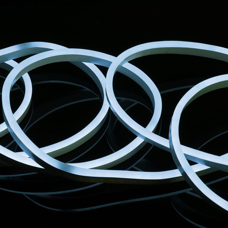 LED светещ кабел 2835 LIGHTEX, светещ със студенобяла светлина, подходящ за допълнително осветяване на окачени тавани, стъклени рафтове на мебели, фасадни стени и прозорци.Кабелът е с размери 8x16 мм и с дължина 10 м, със 120 LED на метър.Характеризира се с мощност 7 W/метър и с висока степен на защита от влага и прах IP65.Предлага се със захранване и аксесоари.