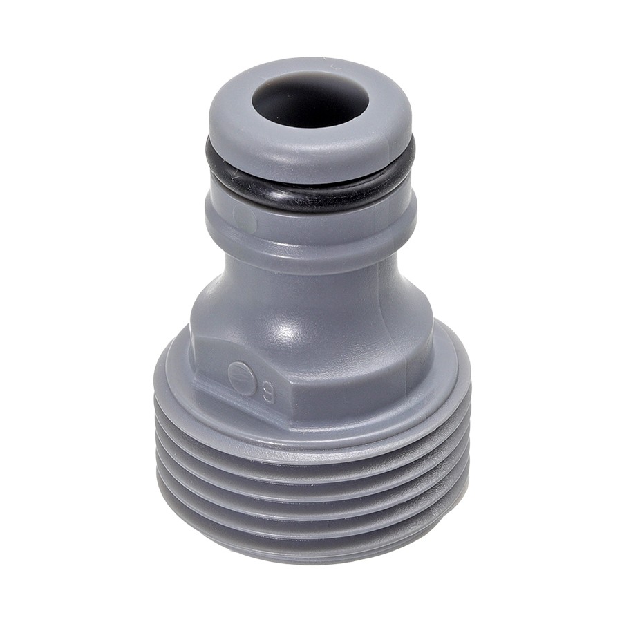 Адаптер за бърза връзка от серията S-line на марката HERLY, изработен от полипропилен. Размерът на бързата връзка е 1/2" М (мъжка резба), а на външната резба: 3/4".Адаптерът се използва за свързване на градински маркуч с размер 1/2" към кран за вода с 3/4" резба.Може да се използва като преходник между различни фитинги, разпръсквачи и съединения в напоителни системи.Осигурява здрава връзка без течове.