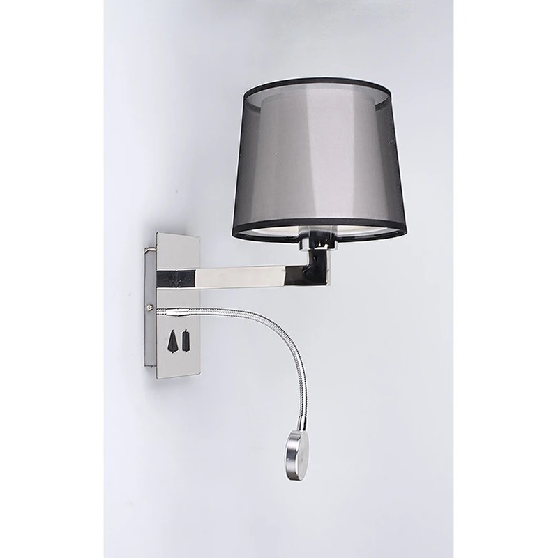 Аплик Лунна пътека на марката DREAM LIGHTS, модел DL 61-2-04, предназначен за стенен монтаж. Подходящ е за осветление на спалня или хол.Комбинираното осветително тяло е изработено от неръждаема стомана в цвят никел и е снабдено с разсейвател от плат.Снабдено е с фасунга за крушка с цокъл E27 (доставя се без крушка).Разполага и с допълнителна, насочваща се LED светлина.Степента на защита е IP20.Апликът е с размери 260x200x330 мм (В/Ш/Д).Притежава CE сертификат и има 2 години гаранция.