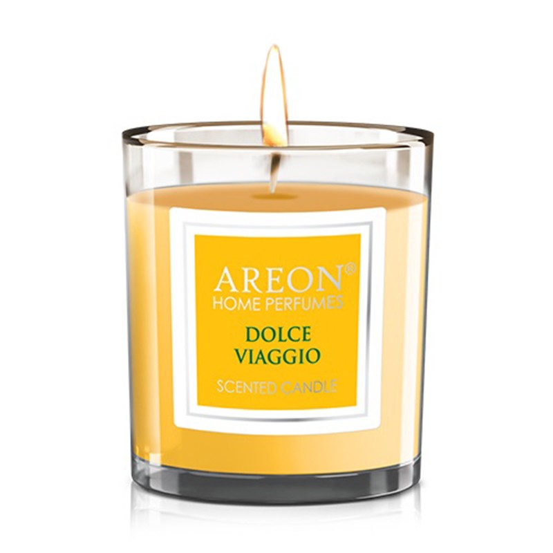 Ароматна свещ Сладко пътуване CR04_G01 AREON за по-приятна и уютна атмосфера у дома.Ориентировъчното време за ползване е 25 часа.Чудесна идея за подарък за скъп човек.