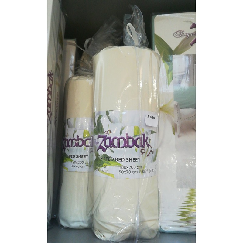 Комплект от чаршаф с ластик и калъфка Cylinder Cream на турската марка ZAMBAK, подходящ за единично легло.Спалното бельо е изработено от 100% памук, в цвят крем.Чаршафът е с размери 100x200 см, а размерите на калъфката са 50x70 см.*Предлага се в цилиндрична опаковка.