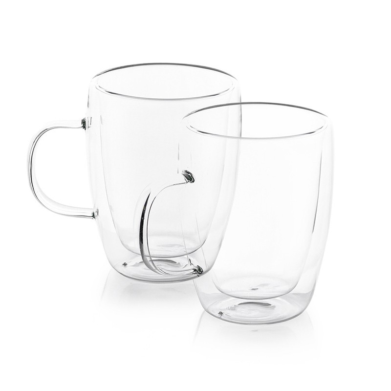 Комплект от две чаши за кафе и чай с дръжка FR-8072 от серията Coffeina на марката LUIGI FERRERO, подходящи за кафе и чай.Чашите са с вместимост 270 мл и размери 9.5x12.2 см (диаметър/височина).Изработени са от боросиликатно стъкло, което издържа на температури в диапазона 0 - 300°С.Двойните стени гарантират запазване на температурата на напитката за по-дълго време като в същото време предпазват пръстите ви от опарване при хващане.Чаши със стилен дизайн, с които пиенето на любимата ви напитка ще се превърне в несравнимо удоволствие.Подходящи са за ползване в микровълнова печка.Не се препоръчва почистване в съдомиялна машина.