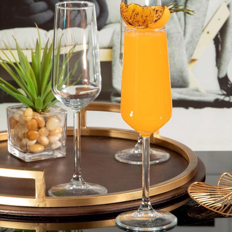 Комплект от шест чаши за шампанско от колекцията Allegra на турската марка PASABAHCE, изработени от висококачествено стъкло с идеално гладка повърхност.Имат подсилен, заоблен ръб, което ги прави по-устойчиви на повреди. С характерната си изпъкнала форма и характерен силует чашите Allegra със сигурност ще допаднат на всеки винолюбител.Модерният им дизайн, съчетан с отлично качество и издръжливост, ги прави подходящи както за ежедневна употреба, така и за официални поводи.Вместимостта им е 195 мл, диаметърът в горната част - 4.5 см, в долната - 7 см, а височината - 22.6 см.