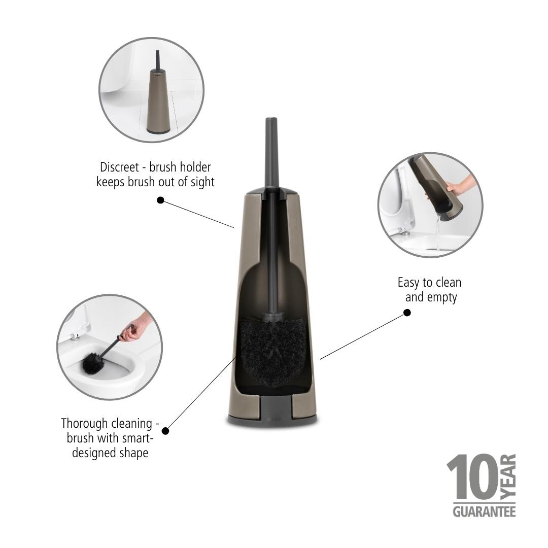 Формата на държача на четката е такава, че частично скрива от поглед самата четка за по-голяма естетика, докато от другата страна на държача четката е на разположение по удобен начин.