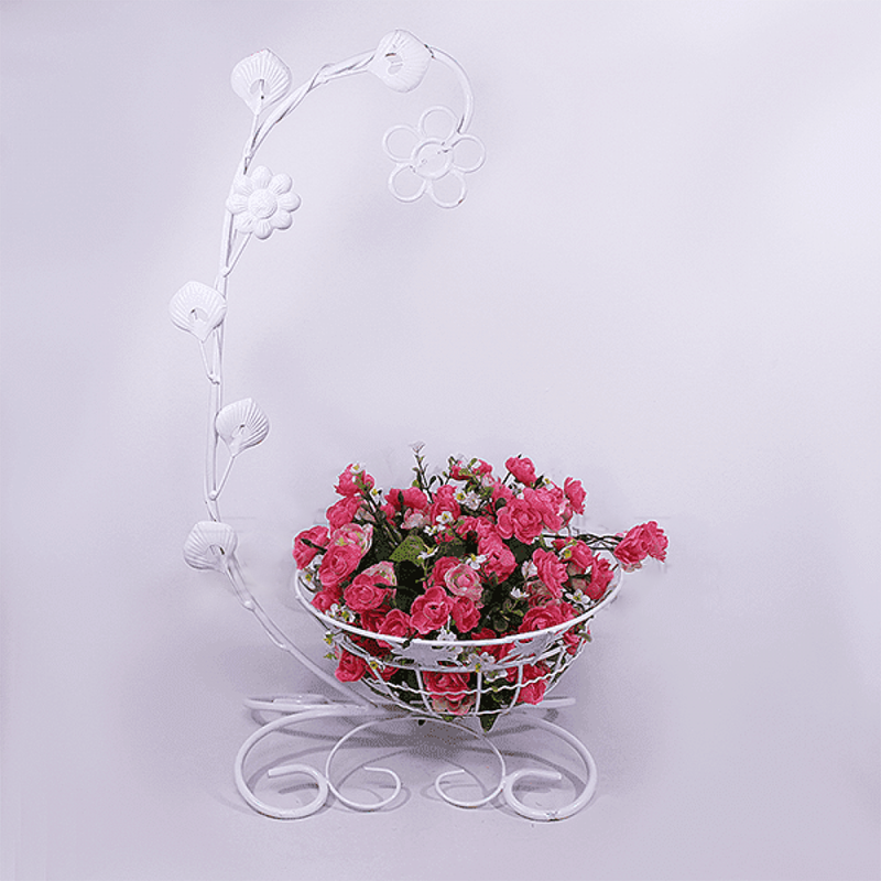 Изработен от здрав метал, този цветарник гарантира дълготрайност и устойчивост на външни влияния, което го прави подходящ както за вътрешна, така и за външна употреба. Фината изработка и стабилната конструкция гарантират, че вашата саксия ще стои сигурно, независимо от размера и теглото ѝ. Белият цвят не само придава чистота и свежест, но и позволява на зеленината и цветовете на растението да изпъкнат по най-добрия начин, създавайки хармонична и привлекателна визия.