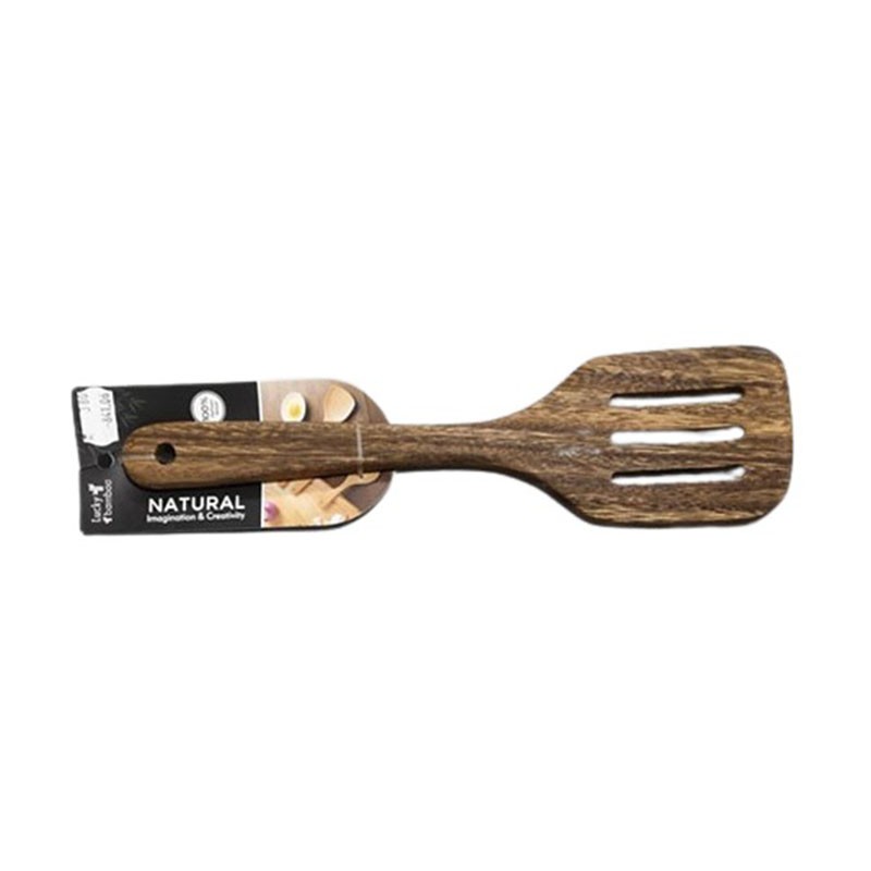 Дървена решетъчна шпатула за готвене DP-8072, подходяща за отцеждане на излишна мазнина, обръщане на различни храни в тиган и лесно сервиране.Снабдена е с отвор за окачване.Използването на дървени прибори за готвене запазва съдовете от надраскване и предпазва ръцете от изгаряне, тъй като дървеният материал не се нагрява по време на готвене.