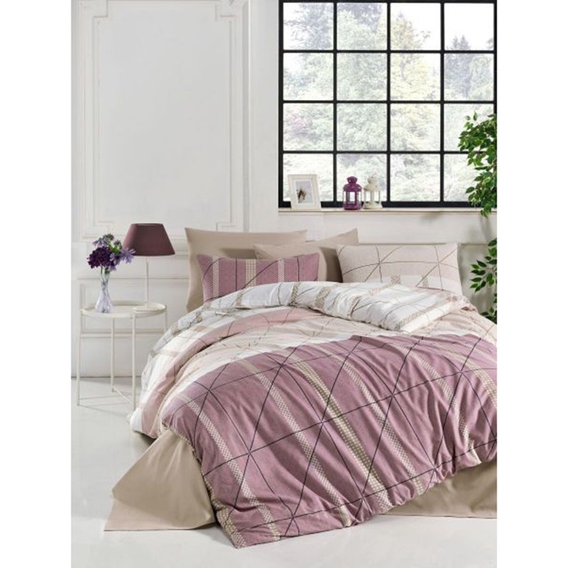 Двоен спален комплект от 4 части на турската марка ZAMBAK на черти и линии, изработен от 100% памук.Комплектът включва плик с размери 200x220 см, долен чаршаф с размери 240x260 см и две калъфки с размери 50x70 см.Качествено спално бельо в нежни цветове, което ще създаде свеж и модерен вид на вашата спалня.Осигурете си спокоен сън и пълноценна почивка с този красив спален комплект.
