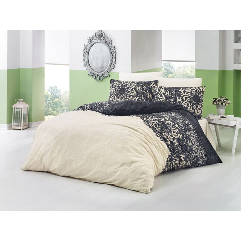 Единичен спален комплект от 3 части на турската марка ZAMBAK, изработен от 100% памук.Спалното бельо е в бежов цвят и с черни шарки, наподобяващи дантела.Комплектът включва плик с размери 160x220 см, долен чаршаф с размери 180x240 см и калъфка с размери 50x70 см.Качествено спално бельо с оригинален дизайн, което ще създаде елегантен и модерен вид на вашата спалня.Осигурете си спокоен сън и пълноценна почивка с този красив спален комплект.