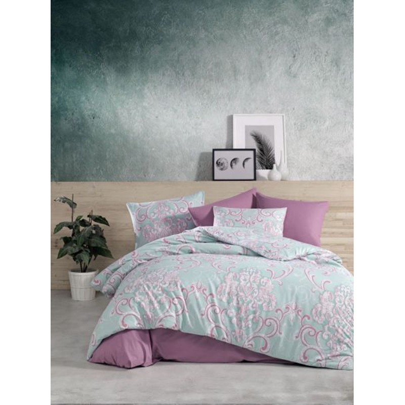 Единичен спален комплект от 3 части на турската марка ZAMBAK с изящни шарки в розово и лилаво, изработен от 100% памук.Комплектът включва плик с размери 160x220 см, долен чаршаф с размери 180x240 см и калъфка с размери 50x70 см.Качествено спално бельо, което ще създаде свеж и модерен вид на вашата спалня.Осигурете си спокоен сън и пълноценна почивка с този красив спален комплект.