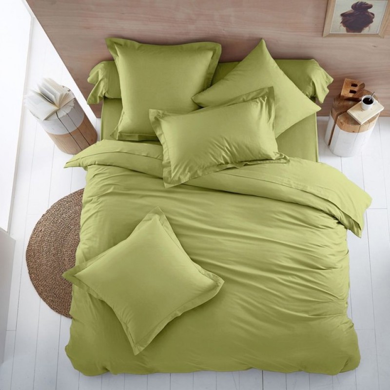 Спален комплект от три части на българската марка RAKLA, изработен от ранфорс (100% памук), в тревист цвят.Комплектът е подходящ за единично легло и включва долен чаршаф с размери 130х240 см, плик с размери 150x220 см и една калъфка с размери 50x70 см.Спалното бельо се характеризира с ниска свиваемост и висока степен на издръжливост на цвета.Осигурете си комфортен сън и чувство за свежест с този приятен на допир спален комплект.