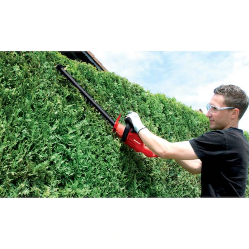 Електрически храсторез на фирма Einhell модел GC-EH 5747 е лесен за работа и предоставя силата на рязане, необходима за почистване на градината и за разгръщане на креативността и творчеството ви. Тих и лесен за използване, идеален за жилищни имоти, предни градини и безопасен за употреба.Моделът служи за прецизното почистване на клони, с него оформянето или рязането на жив плет вече не е сложна задача. Разполага с безопасен превключвател с двойно ръчно задействане спира двойното предпазно острие с алтернативно движение за по-малко от една секунда, за да гарантира безопасността на потребителя.Високата защита на машината изпраща листа и клонки далеч от ръцете на потребителя. Вторичната ергономична дръжка гарантира удобно и здраво захващане на тримера.Храстореза на фирма Einhell е оборудван с масивен задвижващ механизъм, който е изграден да издържа. Предлага се и механизъм за намаляване на напрежението. Този електрически тример за жив плет е снабден със здрава защита на ножовете за безопасно транспортиране.