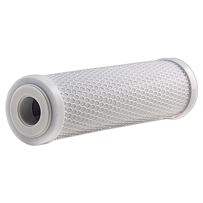 Филтър за вода с пресован активен въглен FCCBL на марката BIO WATER, предназначен за студена питейна и битова вода. Отстранява механични частици с големина до 5 микрона и хлор със съдържание на колоидни и органични субстанции до 200 мг/л (до 99% от свободния хлор).Подобрява вкуса и аромата на водата и елиминира органични замърсявания и пестициди.Филтърният патрон е съвместим с всички видове 10 инчови филтърни колони.Капацитетът му е до 12 000 л или подмяна на 3 - 6 месеца (в зависимост от качеството на пречистваната вода).Филтърът е с дължина 254 мм/10" и диаметър 70 мм.