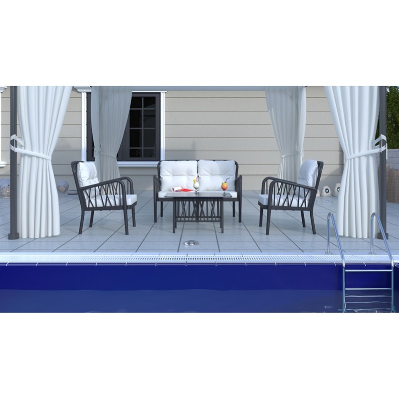 Създайте идеалното пространство за отдих и споделени моменти с градинския комплект Gala Lounge Set. Не пропускайте възможността да преобразите своето външно пространство с този стилен, удобен и издръжлив комплект!
