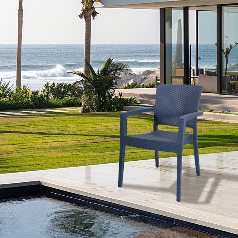 Изработен от висококачествен и изключително устойчив PVC материал, този стол е проектиран да издържа на различни атмосферни условия, като същевременно запазва безупречния си вид за дълго време. Удобните подлакътници осигуряват допълнителен комфорт, а стабилната конструкция гарантира сигурност и издръжливост. Независимо дали ще го използвате самостоятелно, или като част от комплект за хранене на открито, столът Zeugma Rattan е отличен избор за всеки, който търси качествено и стилно решение.