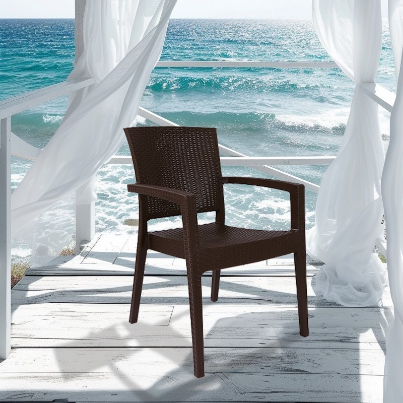 Изработен от висококачествен и устойчив PVC материал в топъл кафяв цвят, столът Zeugma Rattan съчетава естетиката на ратана с издръжливостта и лесната поддръжка на синтетичните материали. Този материал е устойчив на всякакви атмосферни условия, включително UV-лъчи и влага, което гарантира, че столът ще запази своята красота и функционалност през дългите години на употреба. За разлика от естествения ратан, PVC материалът не се напуква и не избледнява, което го прави идеален избор за външни условия.