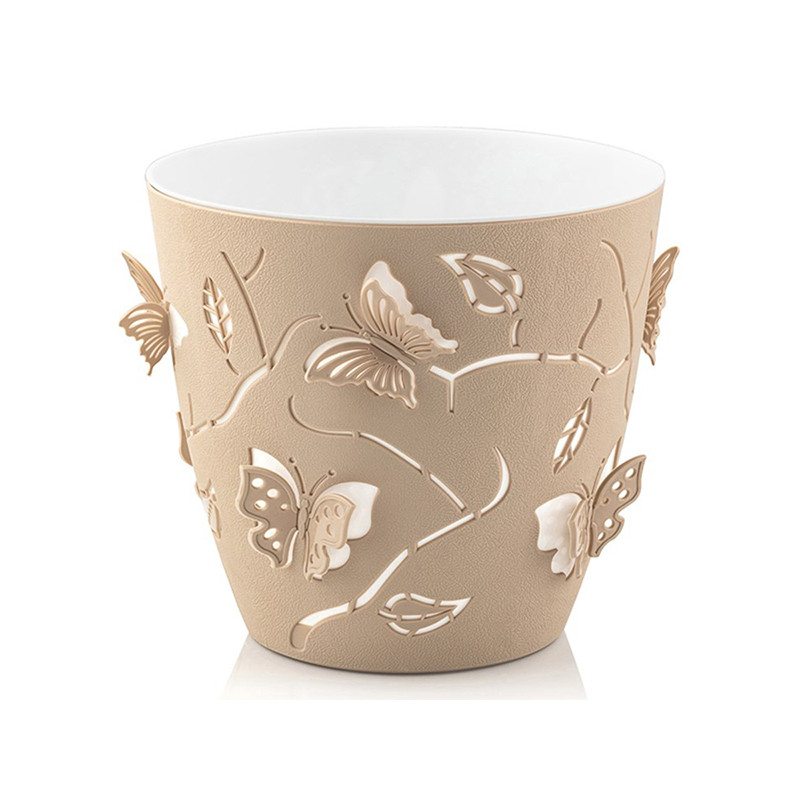 Изработена от висококачествен и издръжлив полипропилен, тази декоративна кашпа е лека, здрава и лесна за поддръжка. Материалът е устойчив на атмосферни влияния, което я прави подходяща както за вътрешна, така и за външна употреба. Благодарение на богатия избор от цветове – бордо, светлорозов, тъмнозелен, бежов, светлосин и лилав – можете лесно да изберете най-подходящия нюанс, който да се впише перфектно в интериорния ви дизайн или да създадете пъстра и забавна композиция с няколко кашпи в различни цветове.
