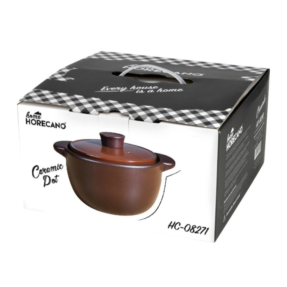 Керамичен гювеч HC-08271 на марката HORECANO в кафяв цвят, подходящ за приготвяне на традиционни за българската кухня ястия на фурна.Керамичните гювечи са чудесни за бавно готвене на слаб огън, тъй като разпределят топлината равномерно и запазват аромата на продуктите.Храната става крехка, сочна и с наситен вкус.Гювечите са особено подходящи за приготвяне на кавърма, зеленчуков гювеч, боб в гювеч, агнешко с картофи, пълнени чушки с кайма и др. Гювечът HC-08271 е с вместимост 3 л, диаметър 22 см и височина 11 см.