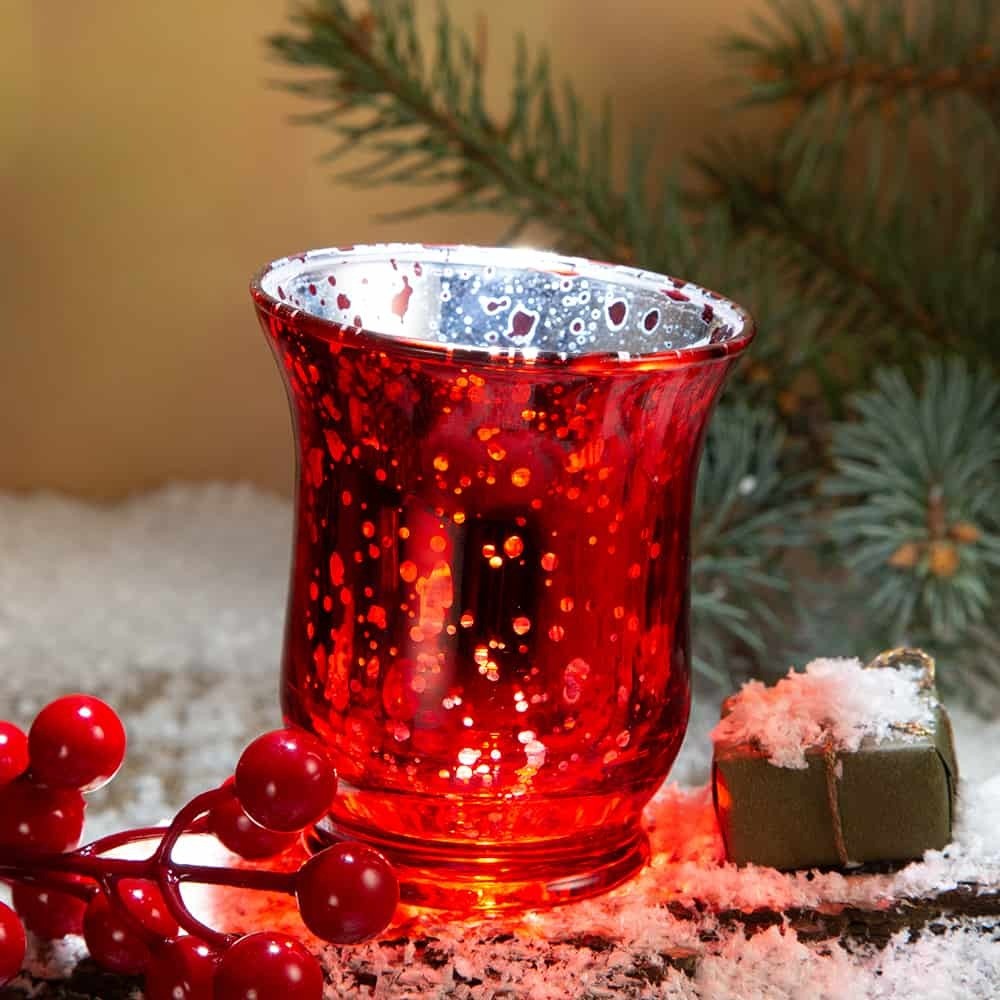Оригинален коледен свещник, модел 1, в червен цвят, изработен от стъкло.Свещникът е с размери 9x7x7 см, подходящ за една свещ.Създайте приказна коледна атмосфера у дома или зарадвайте близък или приятел с този красив свещник. Коледният свещник е произведен в Китай и е с тегло 200 грама.