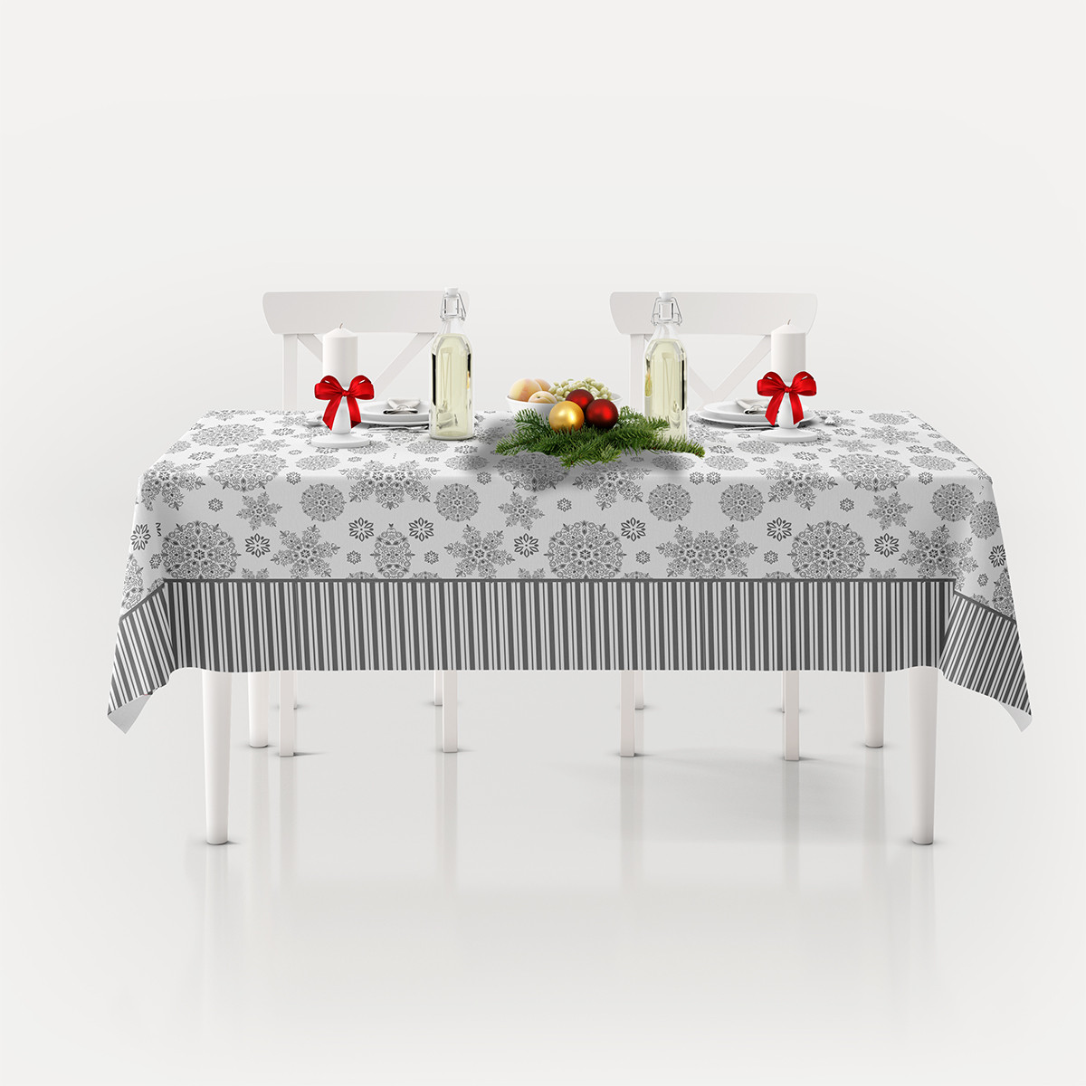 Коледна покривка за маса 100х150 - бяло и сиво