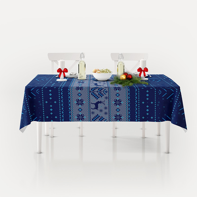 Поръчайте сега коледна покривка за маса 140х180 см синя и добавете изискан акцент към вашата празнична трапеза!
