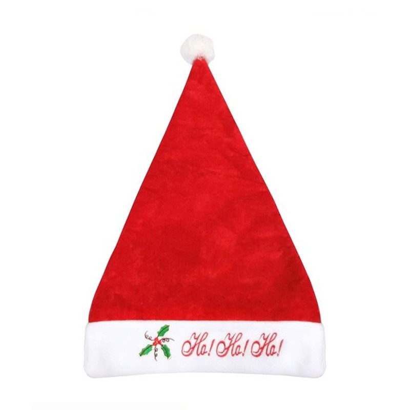 Класическа коледна шапка за глава с надпис "Ho! Ho! Ho!", изработена от полиестерен материал в червен цвят и с бял пискюл.Шапката е с размер 29 см.Заредете се с коледен дух и си подарете вълшебни Коледни и Новогодишни празници с оригинална празнична украса.