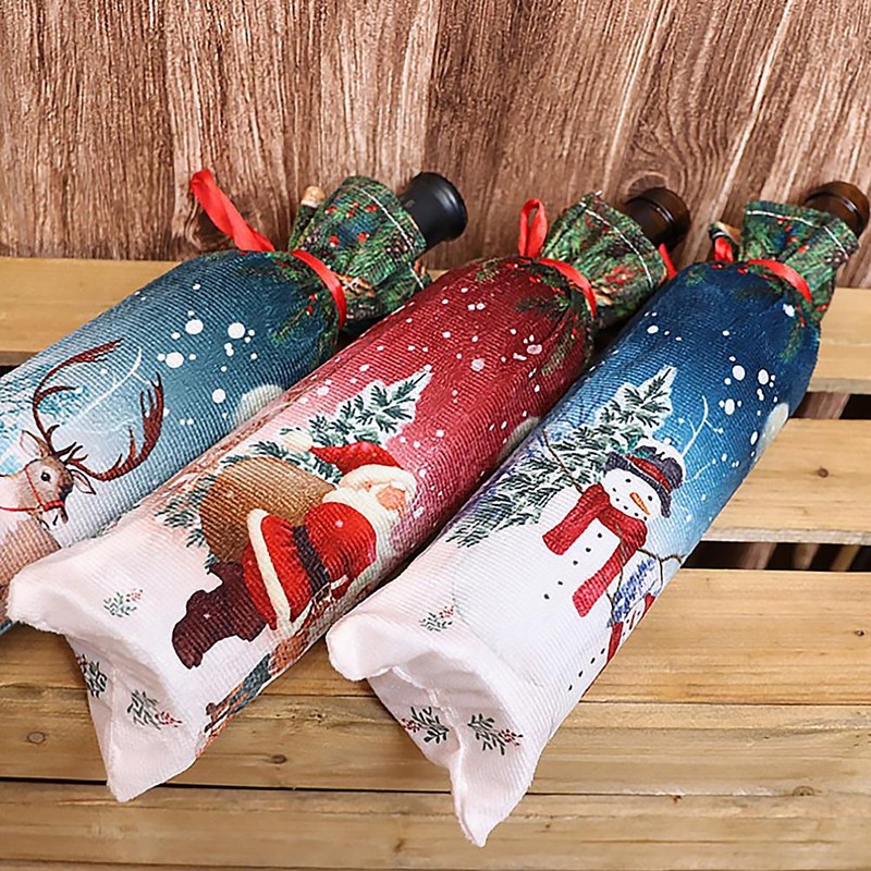 Атрактивно коледно калъфче за бутилка, изработено от мека на допир материя.Калъфчето е с широчина 12 см и дължина 32 см.Впечатлете близък или приятел с бутилка вино, поднесена с оригинално калъфче, и създайте незабравими спомени. *Предлага се с различни картинки.