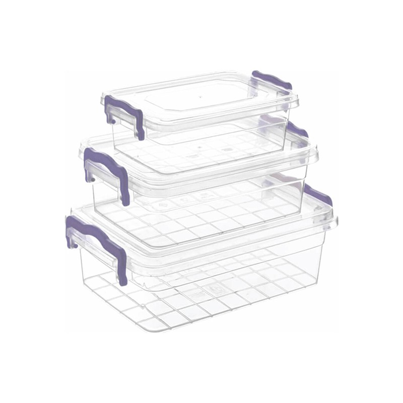 Комплект от 3 броя кутии за съхранение.Продуктите са изработени от висококачествен полипропилен.Кутиите са с вместимост: 650 мл, 1.3 л и 2.2 л.