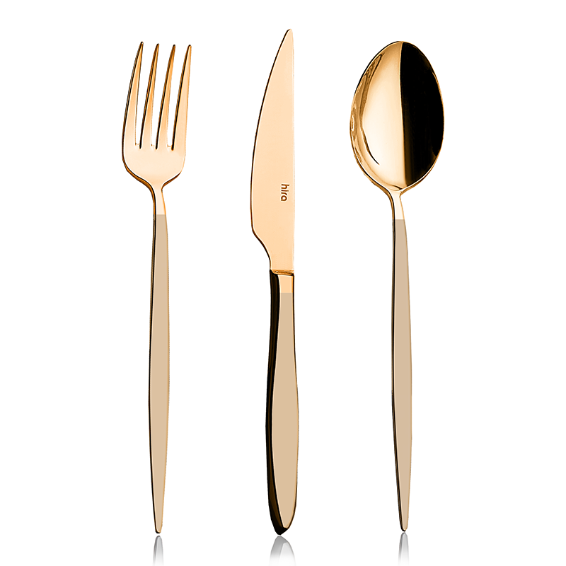 Комплект прибори от 18 части Роза мат от серията Istanbul на турската марка HIRA, подходящ за шест души.Комплектът съдържа 6 лъжици, 6 вилици и 6 ножа, с матирани дръжки.Приборите са изработени от неръждаема стомана тип 304 (с дебелина 3 мм при вилиците и лъжиците и 10 мм при ножовете), която запазва блясъка си дълго време.Отличават се с изискан дизайн, модерен външен вид, здравина и дълъг експлоатационен срок.Имат отлична устойчивост на корозия, лесни са за миене и съхранение.Балансираното тегло и гладката повърхност осигуряват естетическо удоволствие при захващане и комфорт при държане на приборите.Комплектът е подходящ както за домашна употреба, така и за семейни събирания, сервиране на партита и др. Идеален е както за дома, така и за сватби или други празнични събития.Перфектен подарък за младо семейство или приятели.При спазване на препоръките за употреба приборите запазват своя блясък и стилен вид както в първия ден.Вилиците и лъжиците са с дължина 21 см, а ножовете са дълги 22 см.