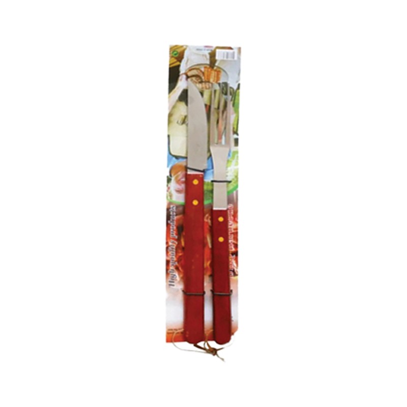 Комплект вилица и нож за скара Т4-106, изработени от висококачествени материали.Приборите са с дървени дръжки, които ще Ви предпазят от изгаряне. Вилицата и ножът са с дължина 40 см.Практичен комплект, с който лесно ще подреждате, обръщате и разрязвате любимите си вкусотии на скара.