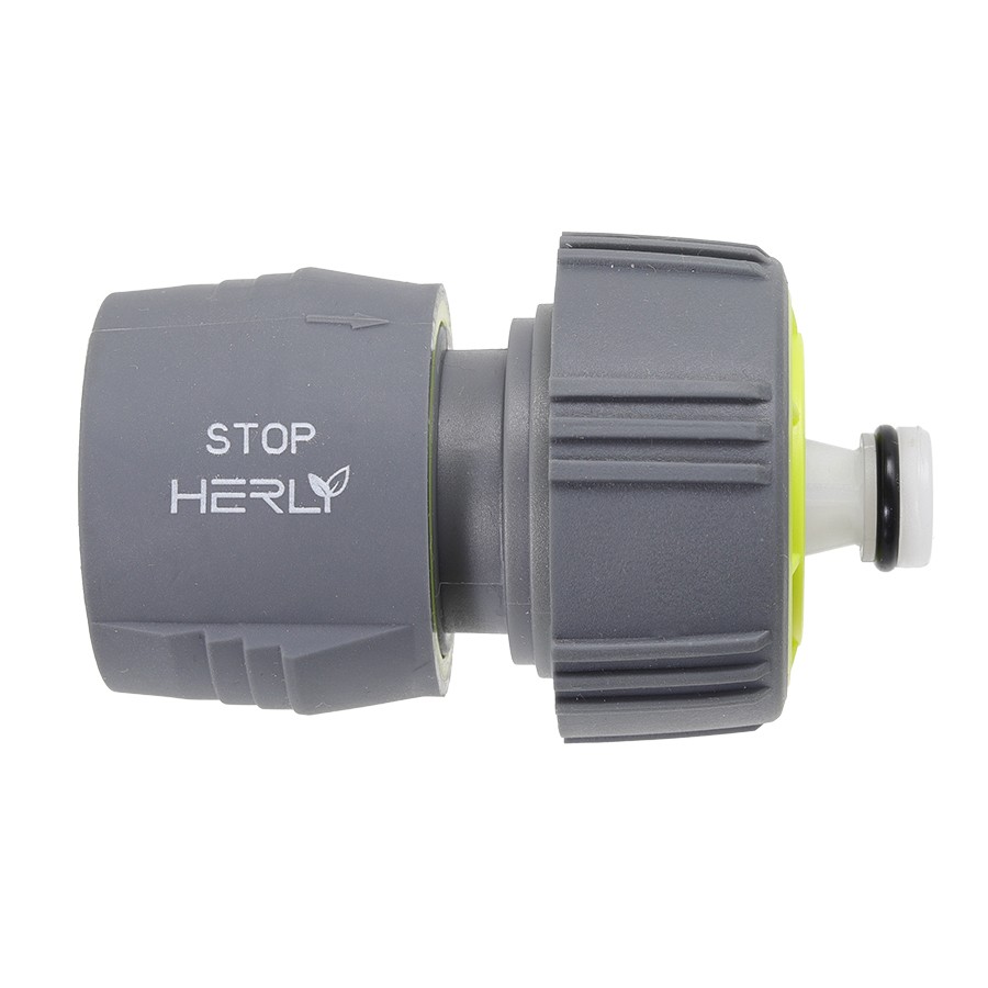 Конектор за маркуч от серията Pro на марката HERLY, изработен от висококачествени материали (ABS, TPR и PP). Размерът на бързата връзка е 1/2" Ж (женска резба). Конекторът е подходящ за свързване на маркуч с размер: 3/4" (≈19 мм) към кран за вода или друго оборудване с 1/2" външна резба.Фитингът позволява използването на по-голям маркуч със стандартен 1/2" кран.Има Stop фунция.