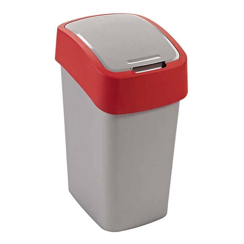 Кош за отпадъци с люлеещ се капак Flip Bin CURVER с вместимост 25 л.Кошът е изработен от качествена пластмаса, в цвят сиво/червено.Размерите му са 47x26x34 см.Кош за боклук с изчистен дизайн, който ще Ви служи дълго време.