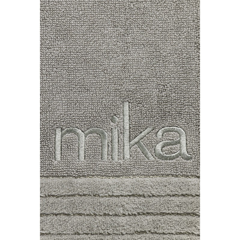 Кърпа за баня от колекцията Velvet на марката MIKA в цвят сребро и с размери 70x140 см.Произведена е от 100% висококачествен памук с плътност 570 гр/м2.Кърпата е изключително мека и приятна на допир и с модерен външен вид.