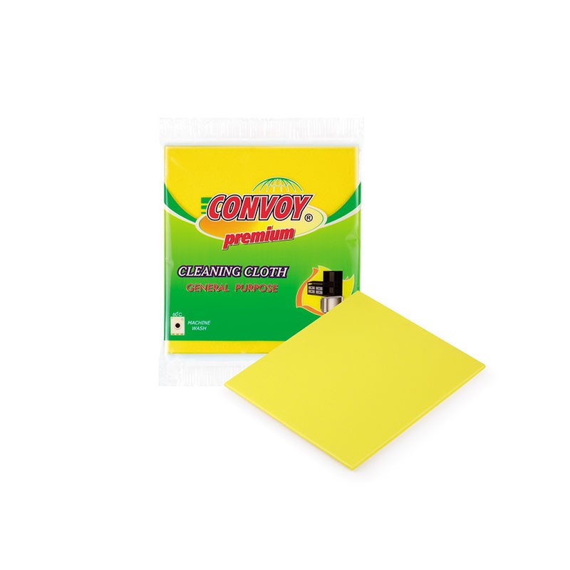 Домакинска кърпа за почистване CONVOY PREMIUM с размери 35x40 см, предназначена за универсална употреба.Подходяща е за забърсване на прах и подсушаване. Може да се използва с почистващи препарати.Кърпата е произведена от вискоза и синтетика, в жълт цвят.