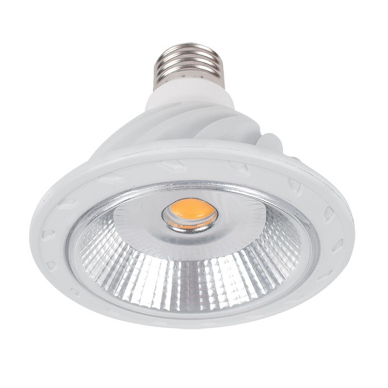 LED лампа LEDCOB PAR30 ELMARK с мощност 12 W, излъчваща топло бяла светлина (2700-3000 К).Лампата е с цокъл E27 и захранващо напрежение 230 V.Излъчва много приятна и равномерна светлина и има малка консумация на електроенергия.Многократното включване и изключване не оказва влияние върху нормалната работа на осветителя.Не е необходимо време за достигане на максимален светлинен поток.Крушката има 25 000 часа живот.Устойчива е на удар и стабилна при вибрации.