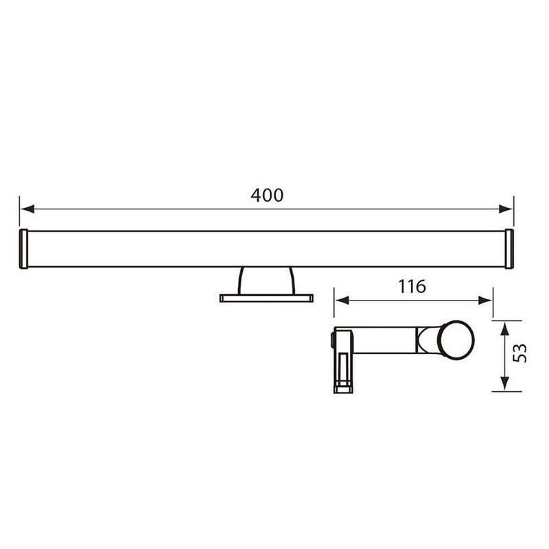 LED осветително тяло за баня 4013 от серията Aldo на марката VIVALUX, предназначено за монтаж над огледало или шкаф за баня.Влагозащитеното осветително тяло е изработено от поликарбонат, в цвят бял/хром и с размери: 400x53x116 мм (дължина/височина/широчина).Излъчва неутрална светлина (цветна температура 4000 K).Характеризира се с мощност 6 W (еквивалентна мощност 40 W), захранване 220 V и светлинен поток 540 lm.Модерно осветително тяло, с компактни размери, подходящо за всяка баня. *LED тяло за баня Aldo използва светодиоди от висок клас (тип SMD), които не подлежат на подмяна.