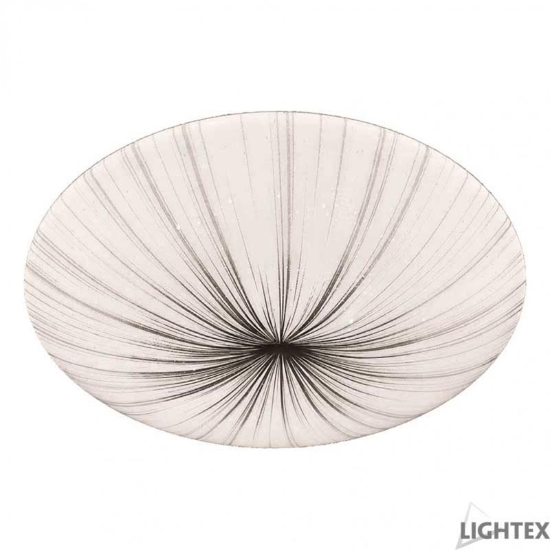 Стилен LED плафон Fiona на марката LIGHTEX, подходящ за спалня, всекидневна или кухня.Плафонът е изработен от полистирол, с диаметър 30 см.Осветителното тяло е с мощност 36 W, цветна температура 4000 К, и светлинен поток 1920 lm.Ъгълът на осветяване е 170°.Лампата има около 15000 часа живот.Продуктът има 1 година гаранция.