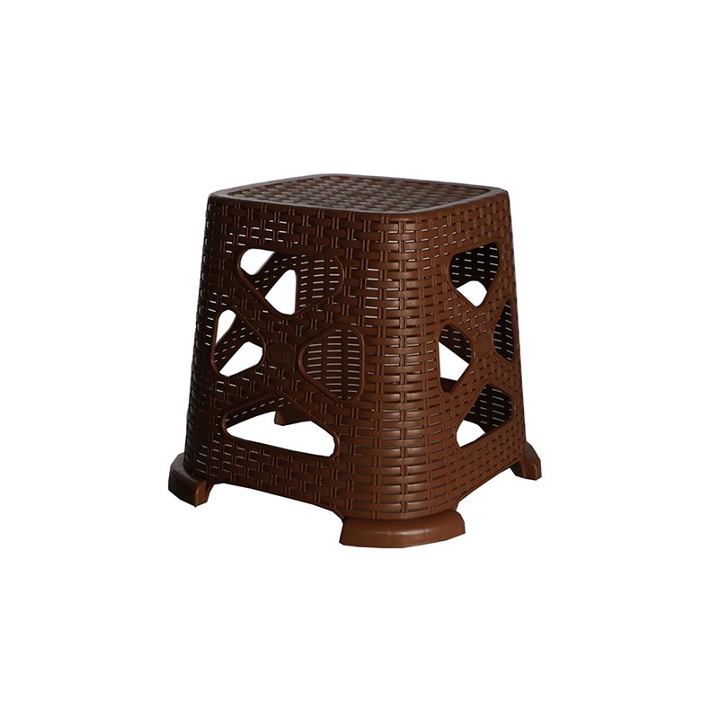 Търсите практично и красиво допълнение към вашето външно или вътрешно пространство? Представяме ви нашата елегантна малка табуретка с дизайн, имитиращ класическа ратанова плетка. Тази табуретка е идеална за добавяне на допълнително място за сядане или за използване като поставка за крака, превръщайки всеки кът в зона за релакс. Изработена от висококачествен пластмасов материал, тя съчетава изящна визия с изключителна здравина и функционалност. Нейният наситен кафяв цвят ще внесе топлина и уют във всяка обстановка.