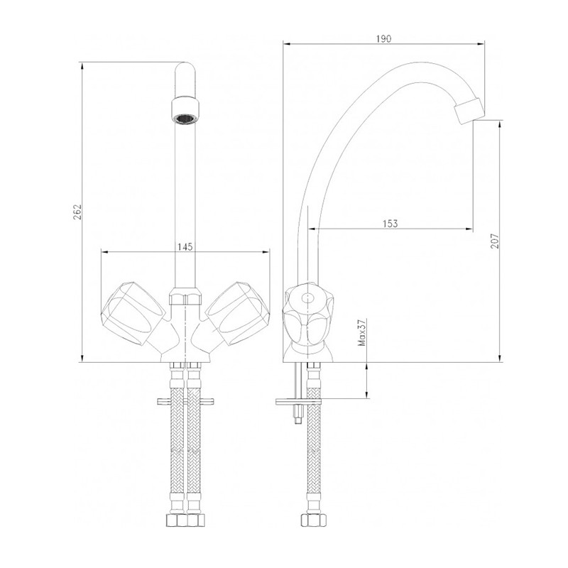 Смесител за кухня Дунав на производителя Inter Ceramic, предвиден за стоящ монтаж. Има две ръкохватки с индикации за топла и студена вода и затварящ керамичен механизъм тип Quick open. Изработен е от месинг и се предлага в цвят хром. Изделието е със стилна и красива визия и е добро предложение за обзавеждането на всяка кухня.