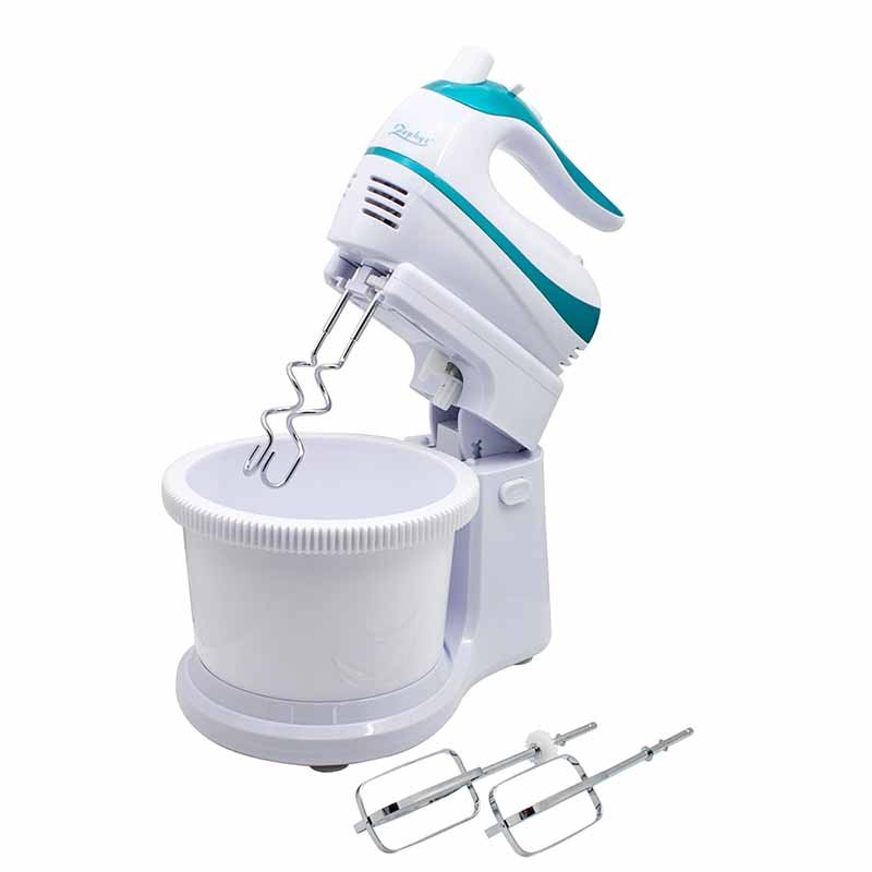 Миксер със стойка с въртяща се купа Z-1115-A ZEPHYR с пет степени на скоростта и турбо функция. Уредът може да бъде използван както като настолен, така и като ръчен миксер. Отличава се с ергономичен дизайн за лесна употреба и почистване.Снабден е с две хромирани бъркалки за тесто с дължина 20 см и две хромирани бъркалки за яйца със същата дължина.Отделянето на бъркалките се извършва безпроблемно, благодарение на бутон за освобождаване.Миксерът е с мощност 300-500 W и захранване 220-240 V.Полезен кухненски помощник, с който ще можете да приготвянето най-разнообразни готварски рецепти. От разбиването на леки смеси като крем, яйца, заливки за сладкиши до разбъркването на тесто, работата с миксера е лесна и комфортна.Моделът е в цвят бяло със синьо.