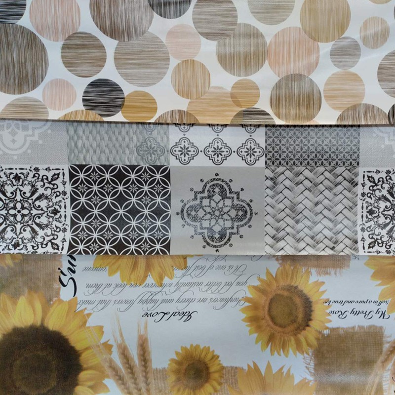 Мушама за маса с широчина 140 см, изработена от висококачествен PVC материал.Предлага се с различни десени - със слънчогледи, пшенични класове и надписи, пъстри топки или на квадрати с различни шарки или елементи и др.Мушами с впечатляваща визия, които ще допринесат за уюта и стила във вашата кухня или трапезария.*Обявената цена е за метър.
