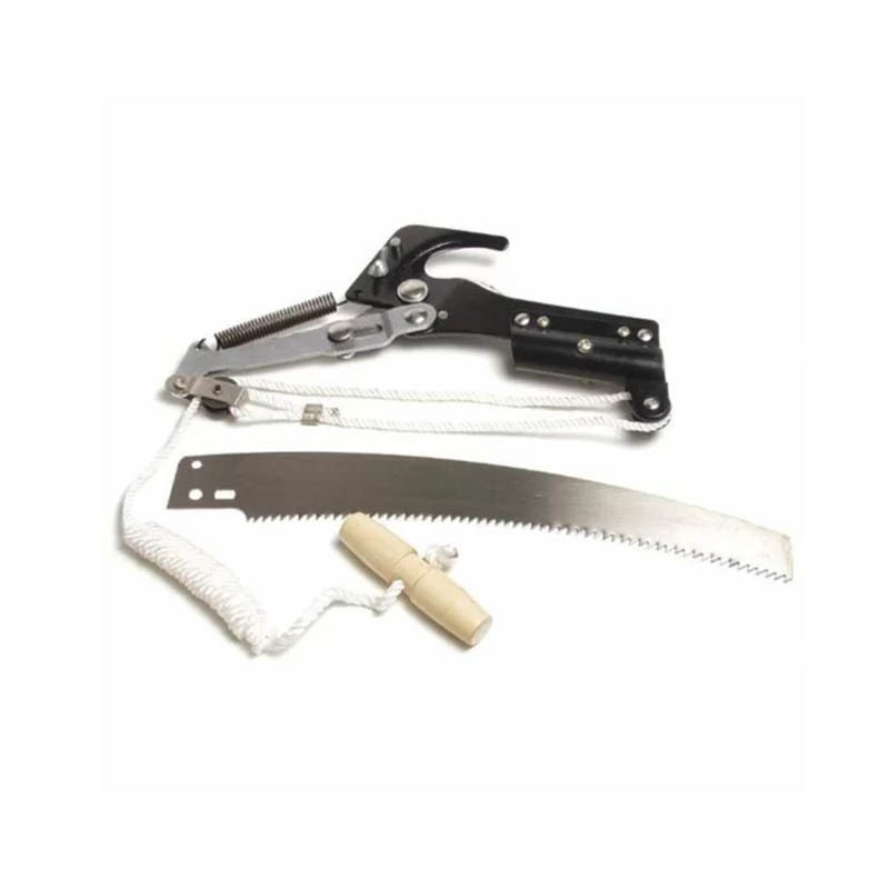 Един от основните компоненти в комплекта е трионът, чието острие е изработено от висококачествена въглеродна стомана. То е закалено, което му придава изключителна здравина и дълготрайна острота, способна да се справи с рязането на по-дебели клони. Ножицата също е изработена от здрави материали, което осигурява чист и прецизен срез. Двата инструмента се монтират лесно на подходяща дръжка, което ги прави универсални и удобни за използване. Материалите на комплекта, като въглеродна стомана и пластмаса, гарантират дълъг живот на инструмента и устойчивост на външни влияния.