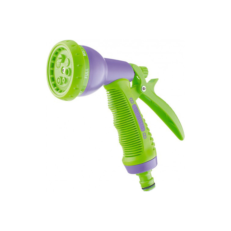 Пистолетът е предназначен за всички видове поливания във вилни участъци, в градини, паркове и малки обществени градинки, както и за почистване. Разполага с щуцерна стойка и спусък, разположен отзад. Снабден е с регулируем накрайник, което осигурява шест режима на поливане: душ, мъгла, конусна струя, централна струя, плоско-хоризонтална струя, твърда струя. Има фиксатор на спусъка за непрекъсната работа. Корпусът и спусъкът на пистолета са направена от здрава АБС-пластмаса, дръжката е залята с гума, което осигурява максимален комфорт при работа с инструмента.