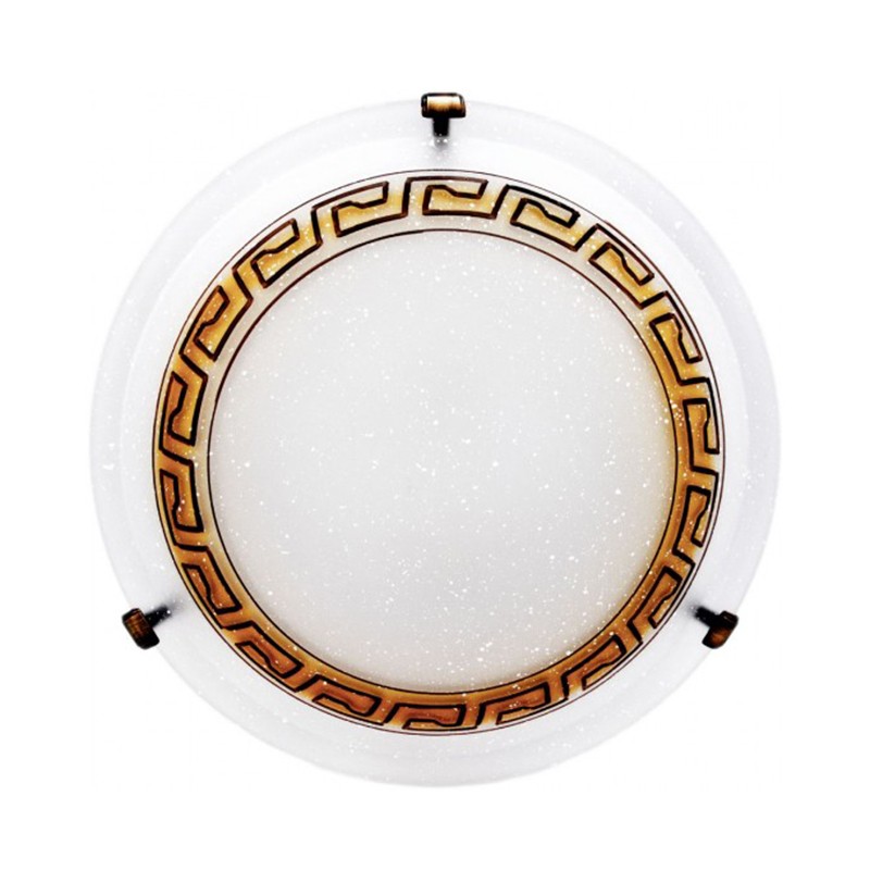 Плафон Grekos на марката INTO, изработен от метал и стъкло, в цвят крем/златисто/кафяво.Подходящ е за монтаж на таван.Снабден е с фасунга за крушка с цокъл E27 и максимална мощност 60 W. Осветителното тяло се характеризра със степен на защита IP20 и захранващо напрежение 230 V.Размерите му са: 250x50 мм (диаметър/височина).Плафон с елегантен дизайн, който ще допринесе за модерната атмосфера във вашия дом.