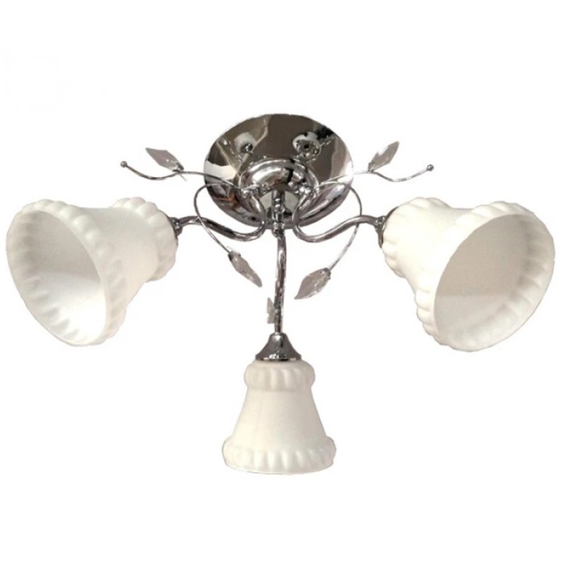 Стилен полилей 9097/3 CR+WT SPECTRA с три плафона за крушки с мощност 60 W и цокъл Е27.Конструкцията на полилея е метална, в сребрист цвят, а плафоните са стъклени и са в бял цвят.Осветителното тяло се характеризира със захранващо напрежение 230 V и степен на влагозащита IP20.