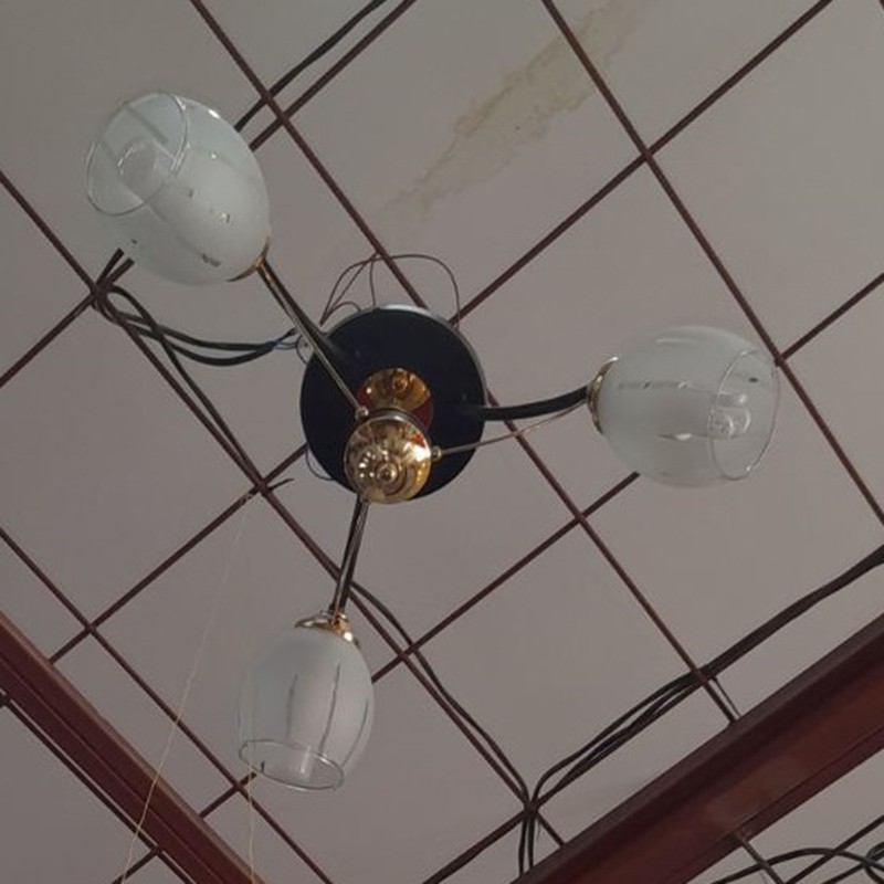 Полилеят е изработен от метал и стъкло – комбинация, която осигурява дълъг живот, добър визуален ефект и лесна поддръжка. Металната основа гарантира стабилност, а стъклените абажури разпръскват светлината равномерно и създават мека и приятна обстановка. Моделът работи с три крушки с цокъл E27, което дава възможност за избор на желаната яркост и тип светлина според предпочитанията – топла, неутрална или студена.