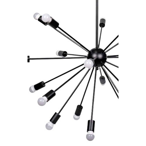 Оригинален полилей Таралеж на марката DREAM LIGHTS, изработен от стомана, прахово боядисана в черен матиран цвят, и пластмаса.Осветителното тяло е предназначено за монтаж на таван, като височината му може да бъде регулирана.Подходящо е за хол или всекидневна.Полилеят е снабден с 20 фасунги за крушки с цокъл Е27 и максимална мощност 40 W. Характеризира се със захрaнващо напрежение 230 V и степен на защита IP20.Полилеят е с размери: 1550x1000x1000 мм (височина, широчина, дължина).Продуктът притежава СЕ сертификат. Има 2 години гаранция.*Предлага се без крушки.
