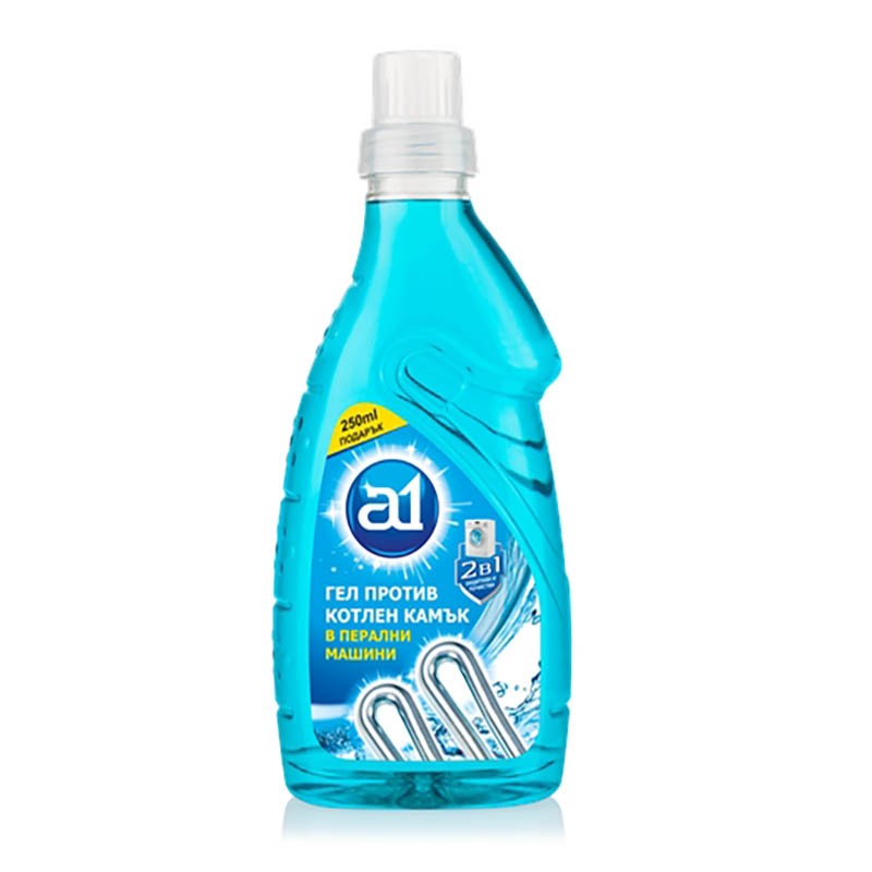 Препаратът омекотява водата и предотвратява отлагането на котлен камък в пералните машини. Премахва натрупалия се варовик. Повишава ефективността на перилния препарат. Гелът против котлен камък в пералните машини реагира с йоните, намиращи се във водата, като формира хелатен комплекс и предотвратява натрупването на котлен камък.