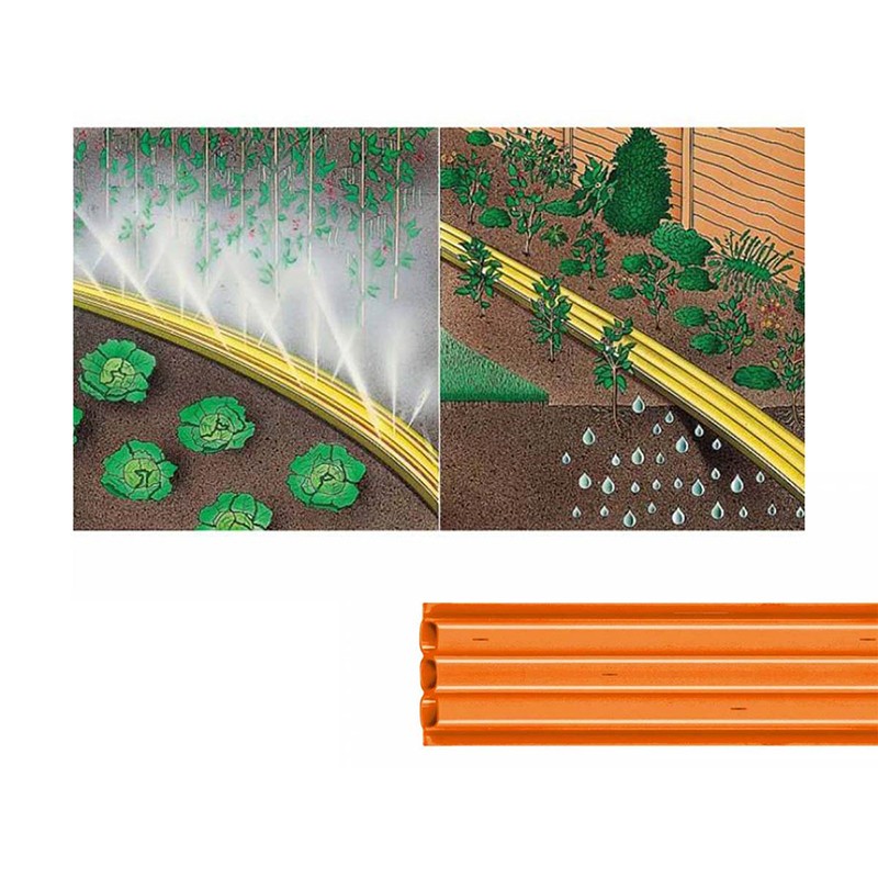 Триканален плосък маркуч с микроперфорация Spritz Hose на марката BRADAS, подходящ за всички системи за поливане.Може да се използва за поливане на трева, декоративни растения, лехи от рози и други растения.Снабден е с конектори (бързи връзки) от висококачествен ABS материал.Маркучът е в оранжев цвят, с дължина 7.5 м и с диаметър 1/2″.