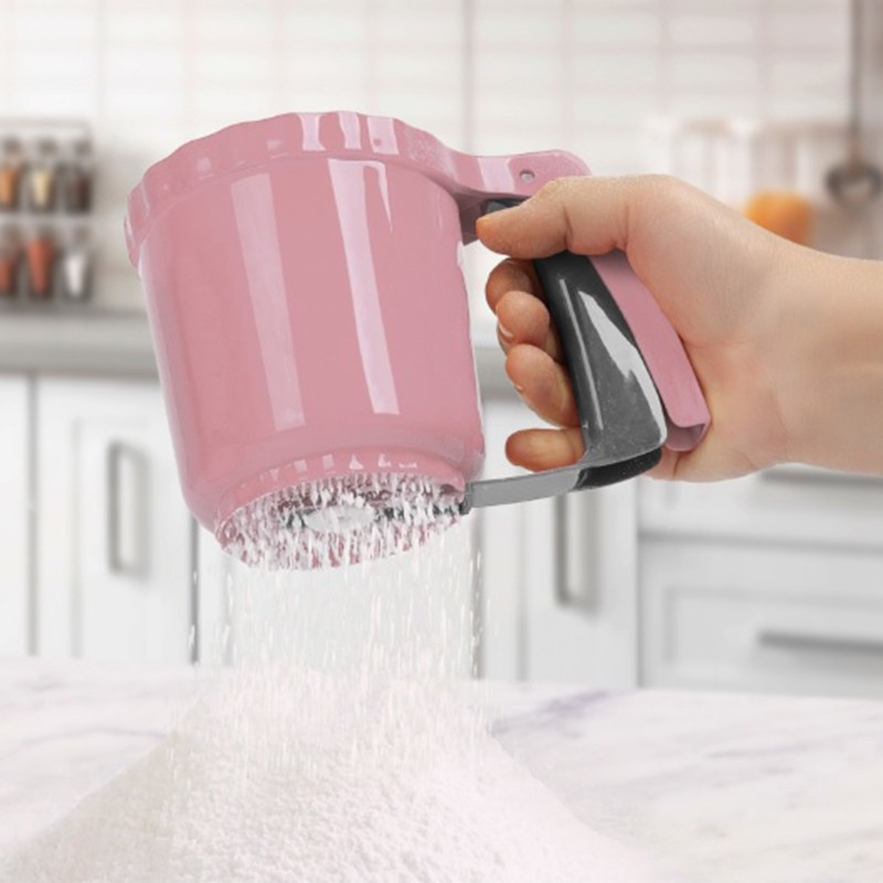Ръчно пластмасово сито PS 13018 BARONESS, подходящо за пресяване на брашно, пудра захар, какао, сода, бакпулвер.Изработено е от висококачествен пластмасов материал.Практичен съд, с който ще пресявате с лекота - просто сложете в ситото малко количество брашно/пудра захар, натиснете дръжката и пресейте съдържанието. Ситото е с размери 16x11x11 см и обем 250 мл.*Предлага се в различни цветове.